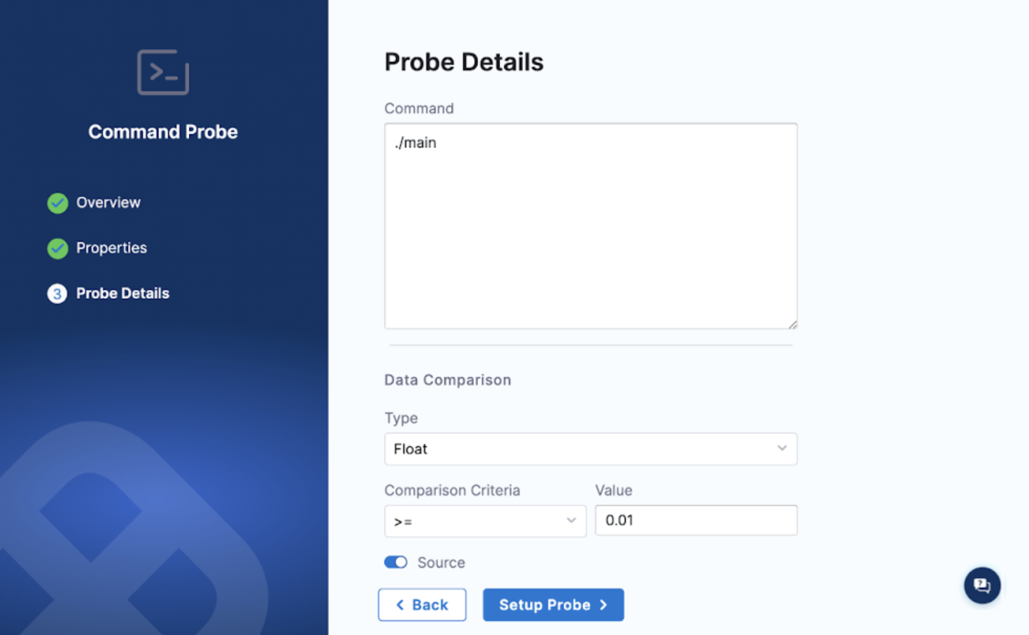 3. Create a new command probe, add the necessary details, and select Configure Properties.