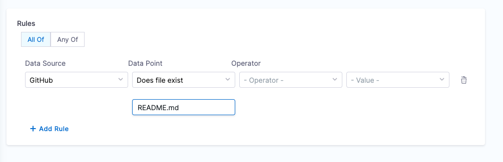 annotation to locate the repository and check for the file’s presence. Make sure to mention the filename with extension or relative path from the root folder (e.g.: README.md or docs/README.md) in the conditional input field. - Prerequisites: Provide suitable
