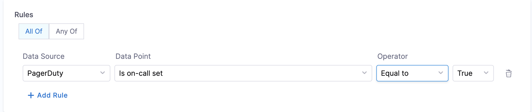 - Is on-call Set - This data point can be used for creating rules that will check if the on-call is set for a given service.
