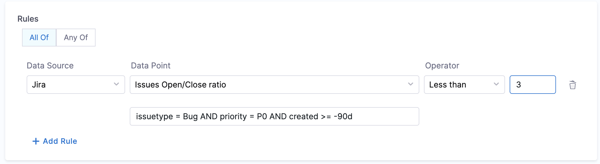 - Objective: Calculates the ratio between Open & Closed issues for the given JQL query.