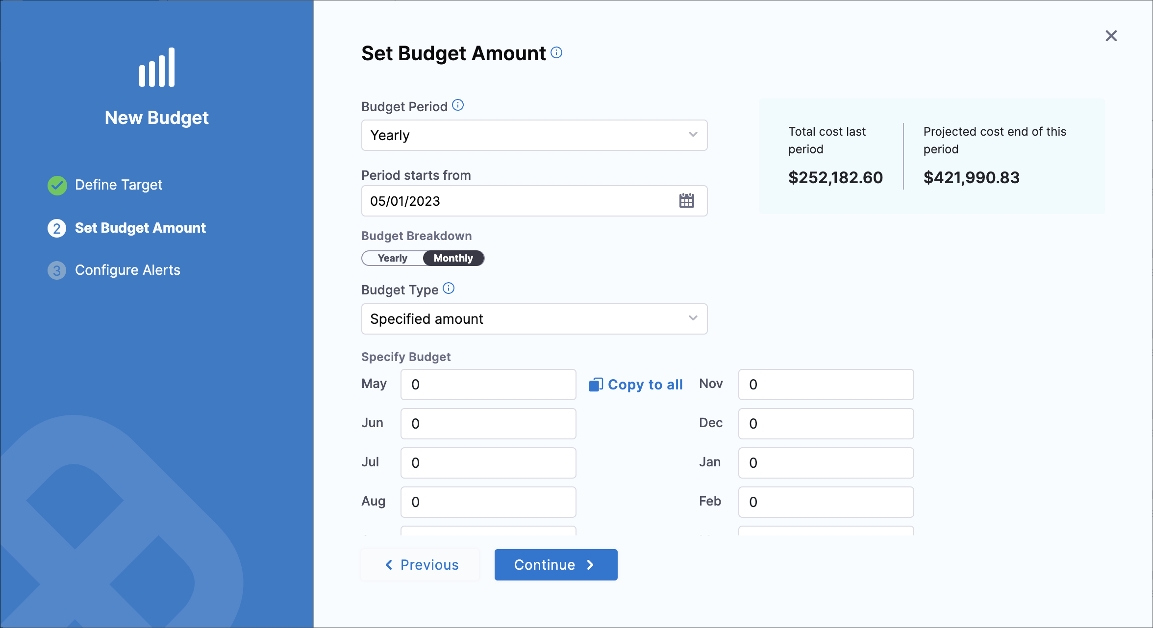 Budget Forecasting Enhancement: Added support for overriding forecast values in yearly budgets with monthly breakdown, providing more granular budget management capabilities. Also, improved the graph to show the forecasted values if override is enabled. [CCM-24440]