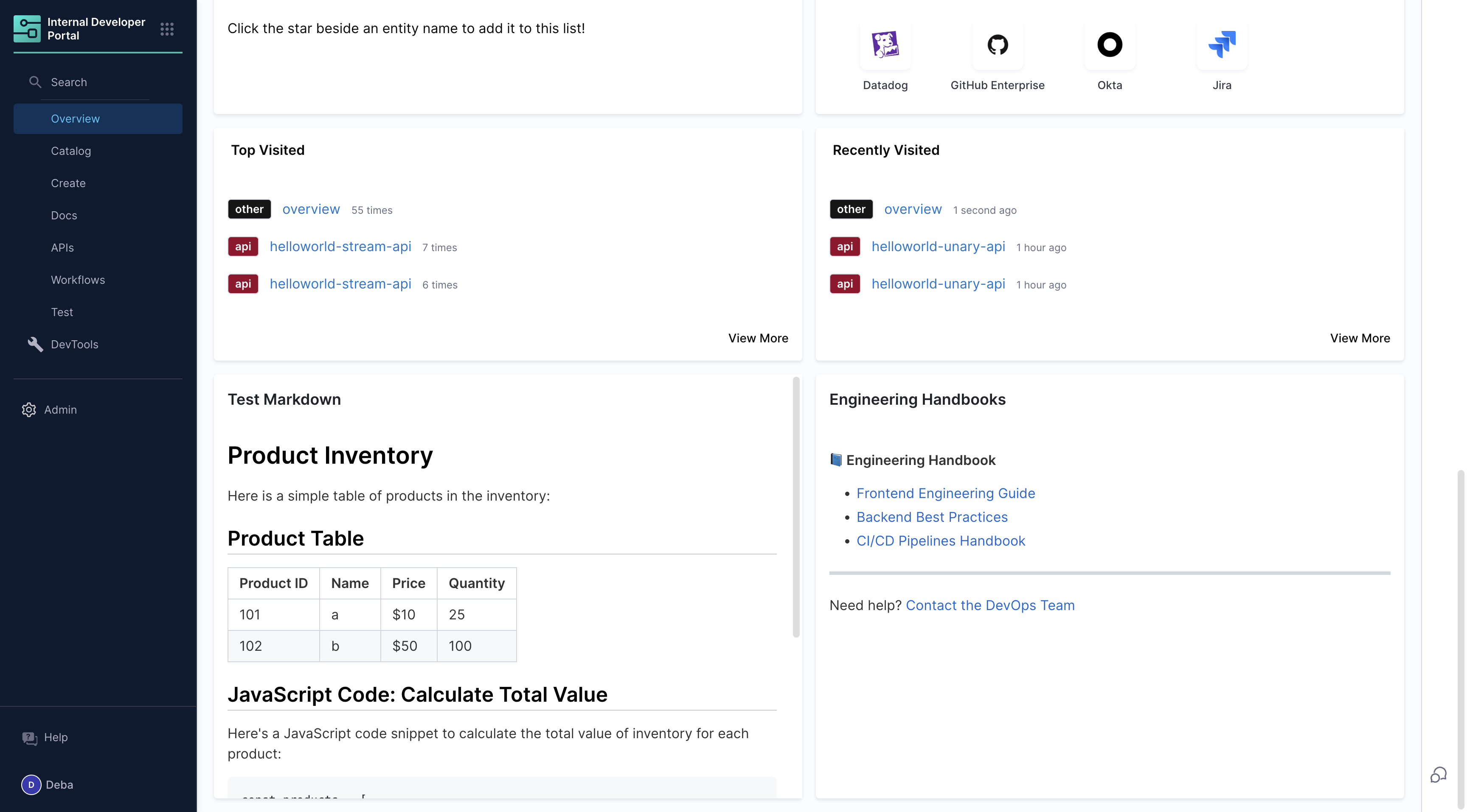 Internal Developer Portal Release Notes
